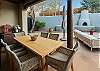 Covered patios make for year-round entertaining at the large outdoor dining table. Outdoor furniture to enjoy the patio and an outside fireplace. A path leads down to the Pinon and Cypress trees that surround the property.