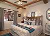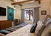 The expansive master suite boasts a walk-in closet with built-ins and French doors leading to a private, enclosed coyote-fenced yard with low-maintenance landscaping and multiple outdoor sitting areas. The luxurious ensuite bathroom includes a sliding barn door, double granite vanities, built-ins, and a walk-in tiled shower, while the guest bathroom also features granite counters and built-ins.